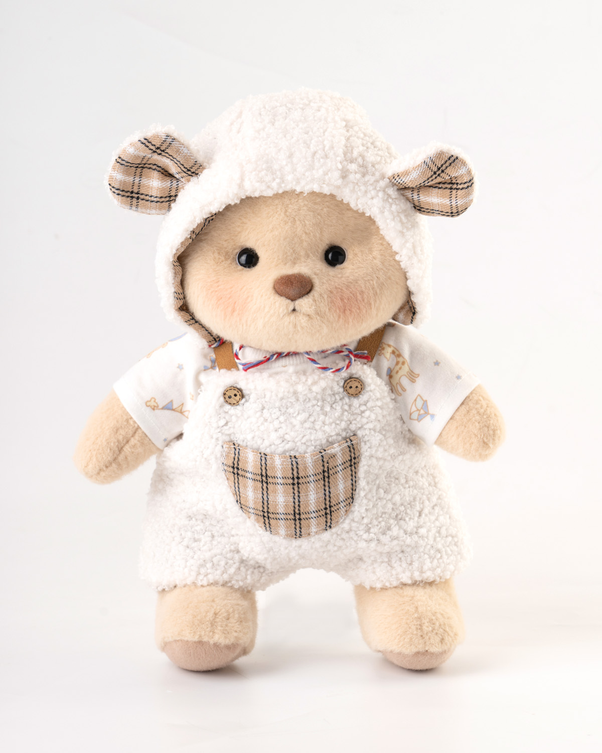 Getahug Brown And White Plaid Sheep White Teddy Bear | Handmade Stuffed Animal Gift