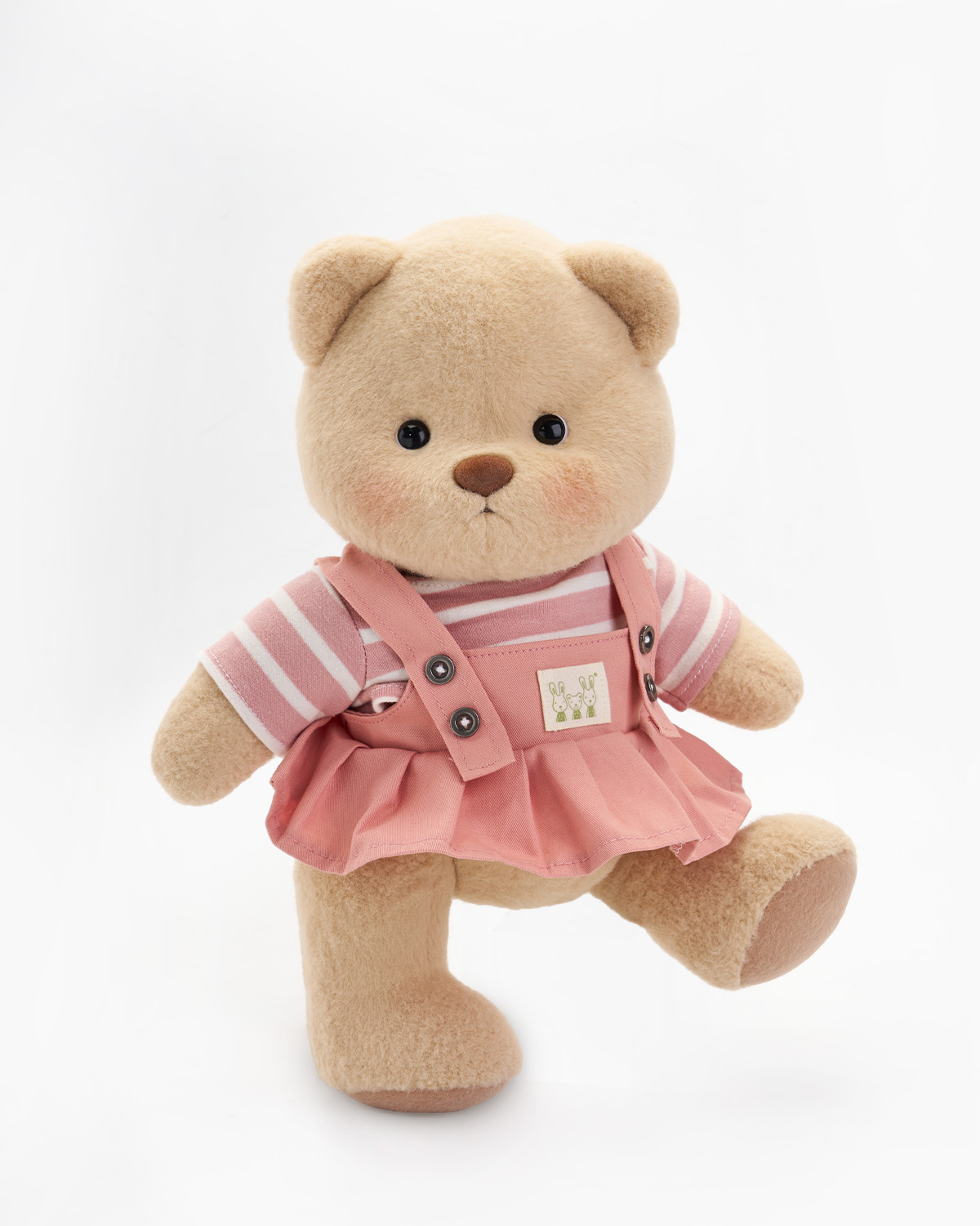 Getahug Striped Top Pink Overalls Dress White Teddy Bear | Handmade Stuffed Animal Gift
